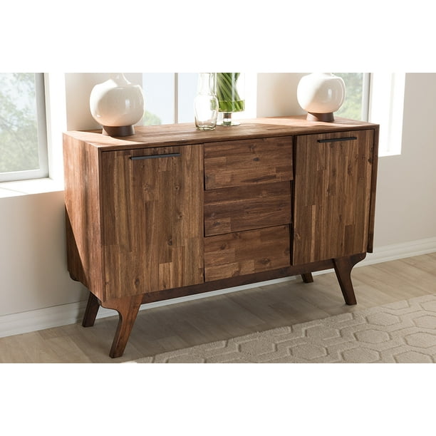 Baxton Studio Sierra Mid Century Modern Brown Wood 3 Drawer Sideboard Walmart Com Walmart Com from i5.walmartimages.com Buffets, sideboards and china cabinets are ideal for displaying and storing fine china, linens, or your favorite keepsakes. Delivery of this item was easy, though seemed to take quite a while for the item to ship to the delivery company. A lesson in design and entertaining, the buffet sideboard takes your dining or living space to the next level turning you into the hostess with the chicest style. The shelves are adjustable and removable to customize the space. New products, sweet savings — straight to your inbox. 60's mastercraft credenza cabinet w/brass mid century modern rohne/rutili era. Oscuro black 73 cabinet $929. The wood cabinet provides an open shelf with a removable wine rack and another open shelf with a wine glass holder mounted at the top.